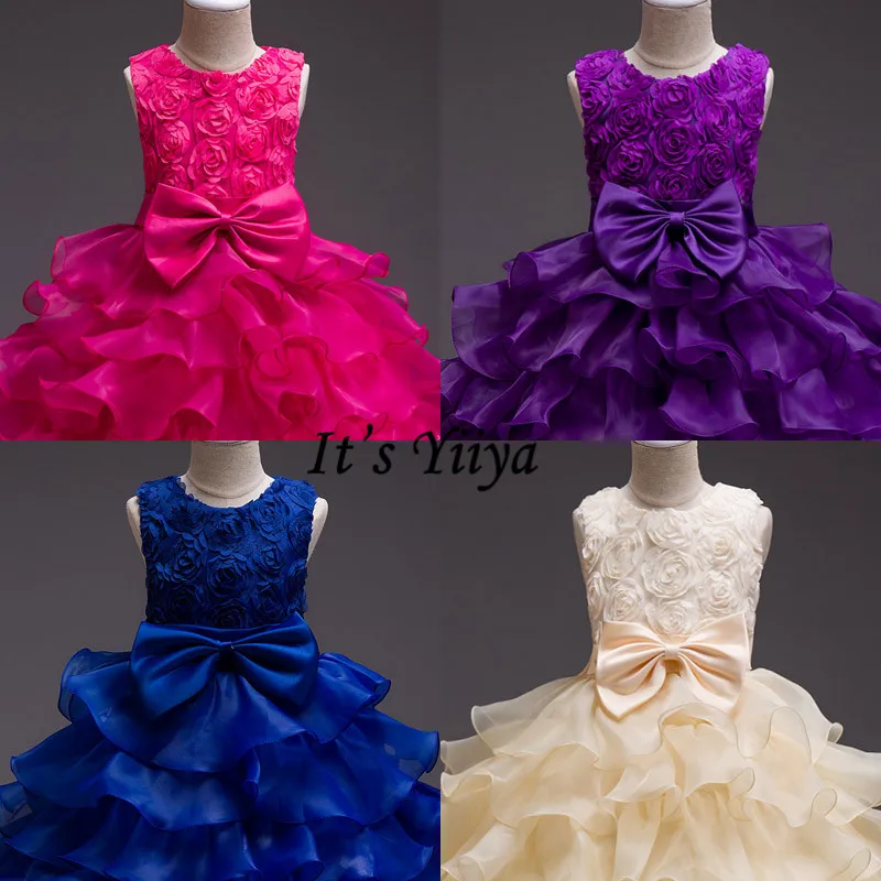 Special Offer Es YiiYa flor chica arco grande vestido De niñas Vestidos para fiesta y boda niveles tanque Vestidos De Noches para Ninas 559 Discount 50% Today!