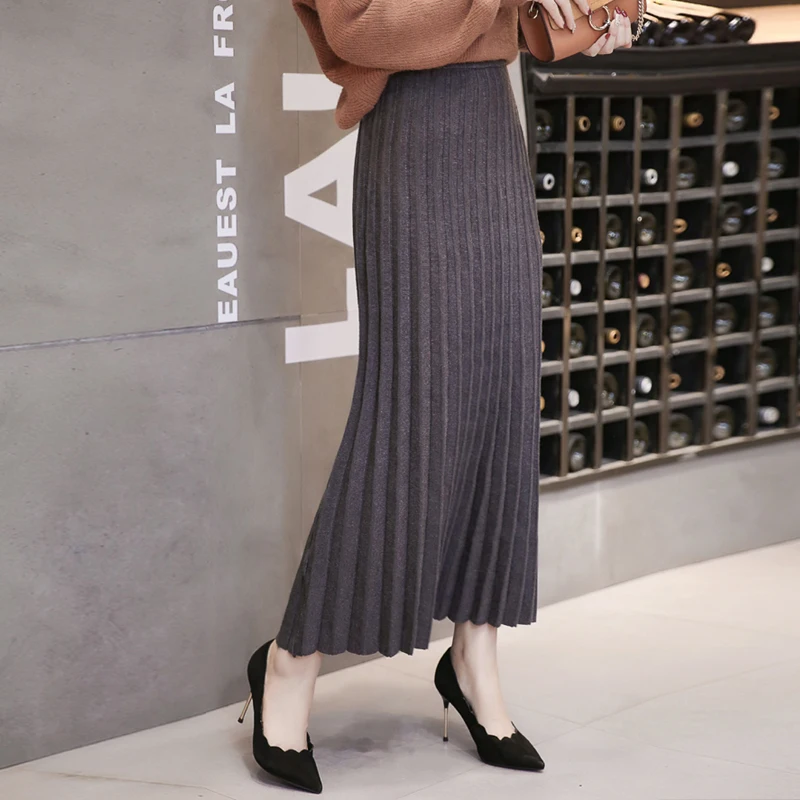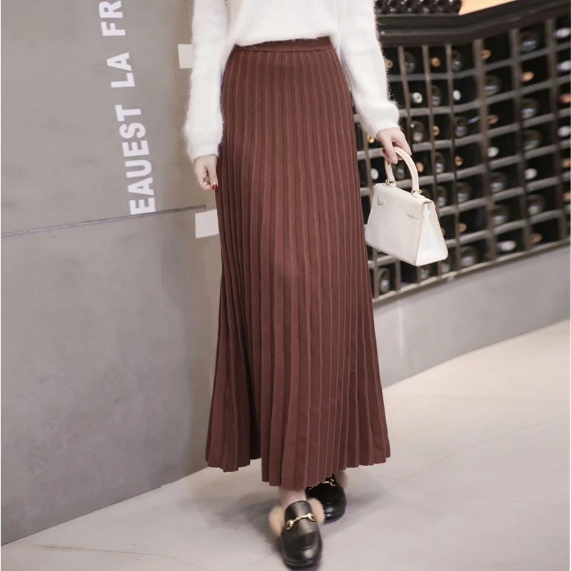 Special Offer 2019 Otoño Invierno de punto grueso de línea a plisado largo sólido faldas de fondo mujeres Imperio de punto Maxi falda BH8815 Discount 0% Today!