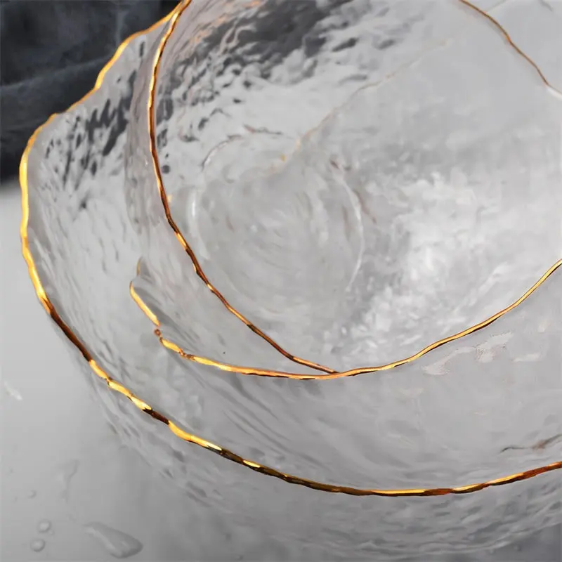 Special Offer Borde de incrustación de oro Irregular cuenco de ensalada de vidrio cuencos de arroz de fruta recipiente de almacenamiento de alimentos caja de almuerzo Bento decoración vajilla Discount 0% Today!