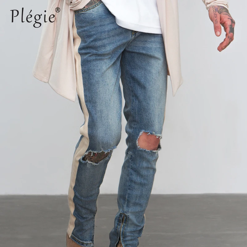Special Offer Plegie 2019 nuevos pantalones vaqueros flacos para hombres Streetwear Jeans rasgados para hombre pantalón de Chandal ajustado cremallera HipHop Jeans Homme Denim Discount 0% Today!
