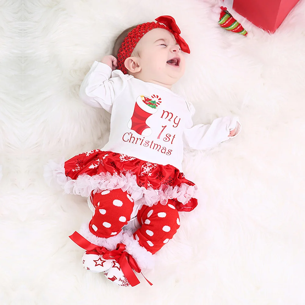 Special Offer Ropa de Navidad para bebés copo de nieve de manga larga vestido de mameluco para recién nacido Ropa para Niñas 4 Uds conjunto 2018 ropa infantil de Año Nuevo Discount 0% Today!
