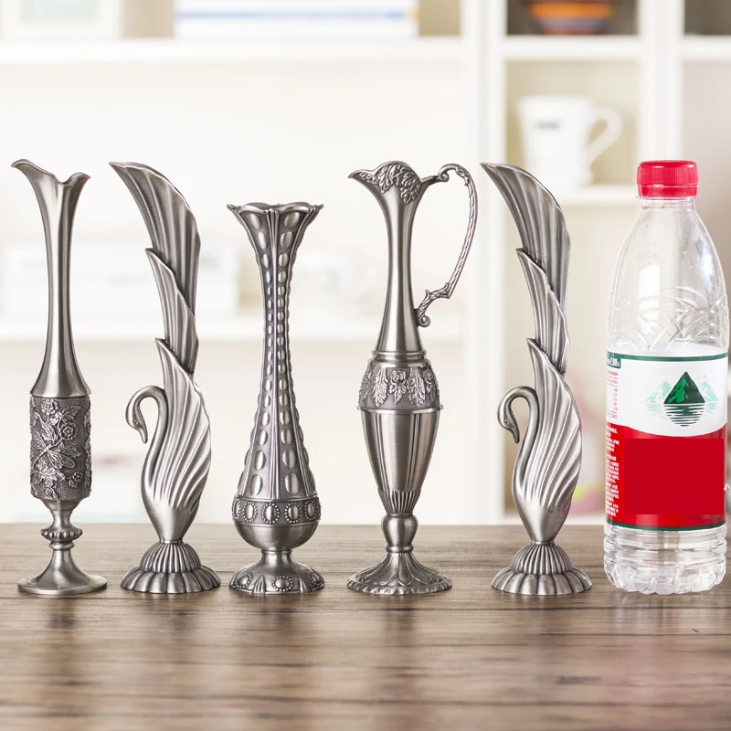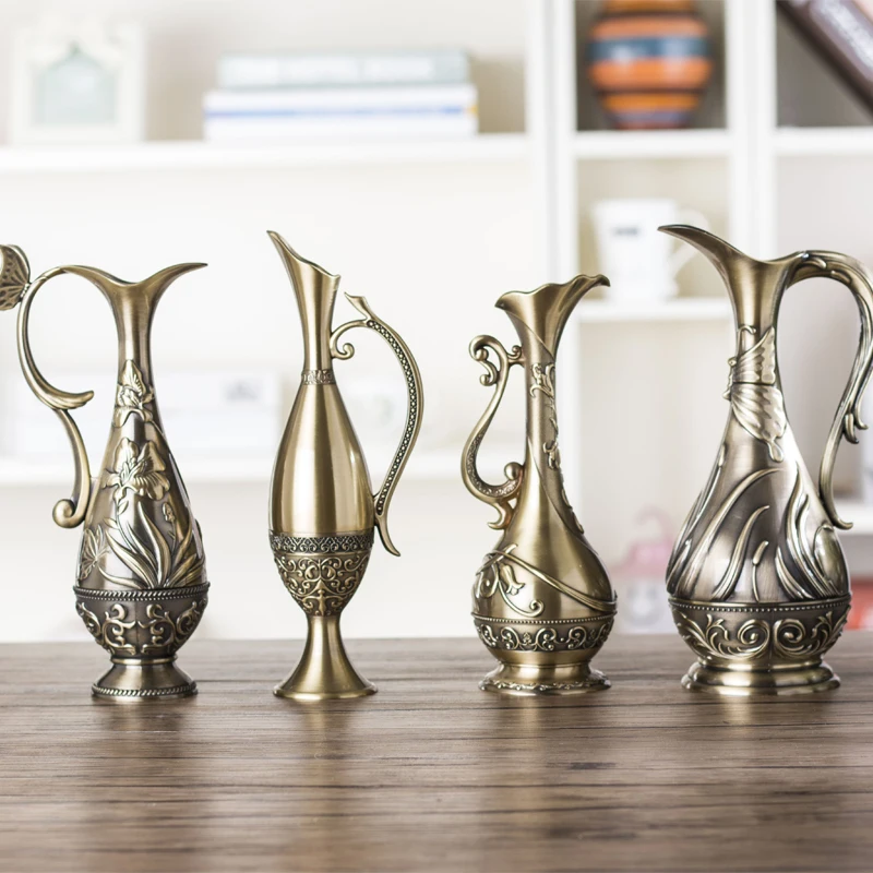 Special Offer Florero de pavo real retro de Europa dorado bronce Aleación de metal pequeño jarrones de flores decoración botella de artesanía accesorios de decoración para el hogar Discount 20% Today!