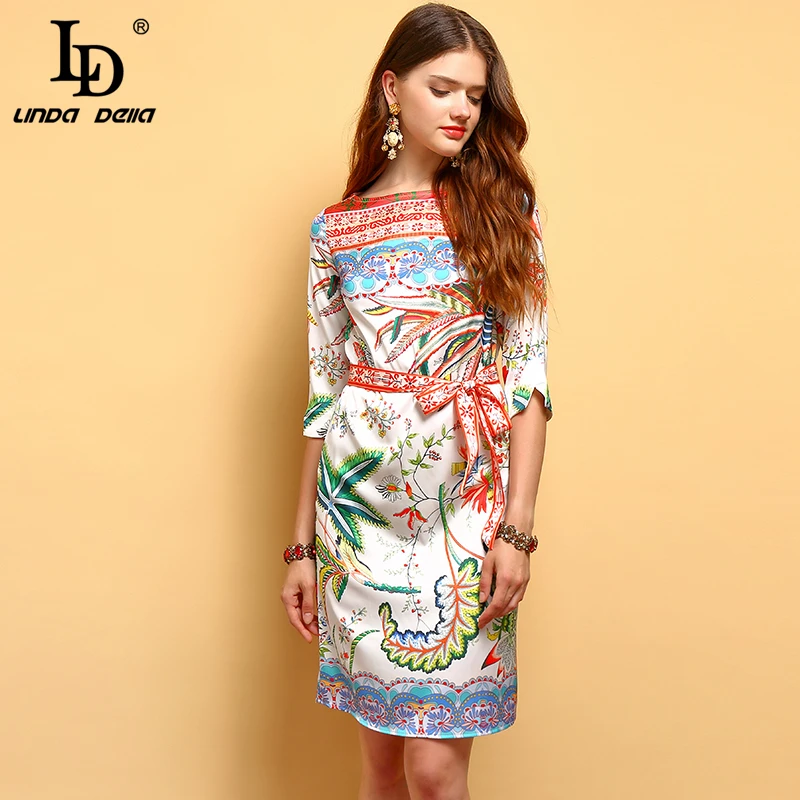 Special Offer LD LINDA DELLA 2019 verano moda Vintage de las mujeres vestido de lazo de media manga Floral impreso damas elegantes vacaciones Mini vestidos Discount 20% Today!