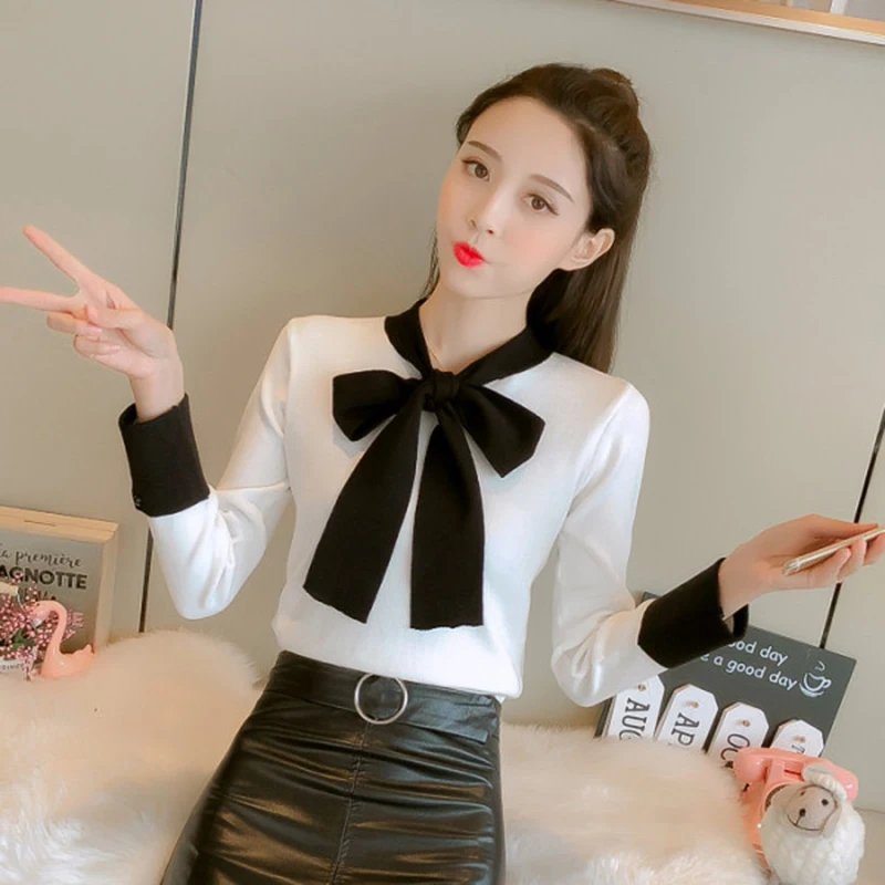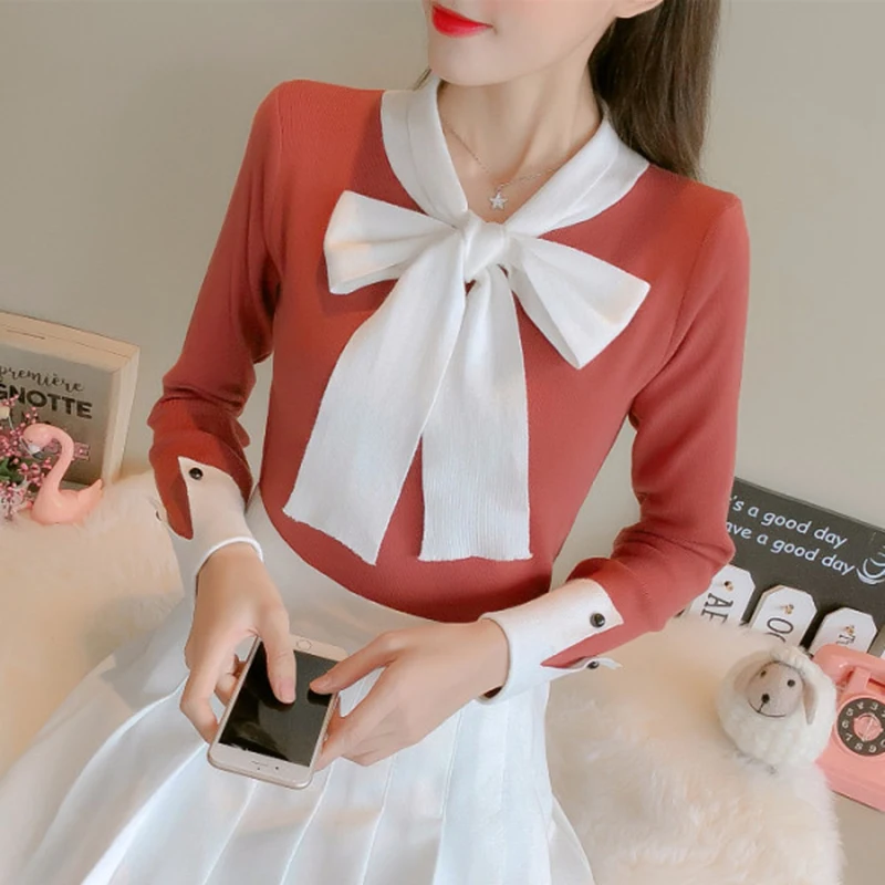 Special Offer Suéter con lazo para mujer moda 2019 otoño y primavera jersey tejido para mujer jersey de manga larga ropa para mujer ajustado Discount 30% Today!