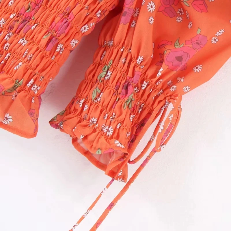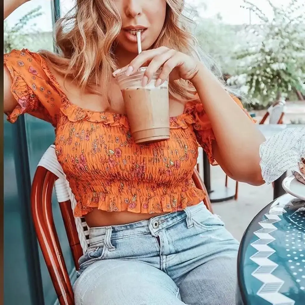 Special Offer 2019 Boho bow vintage blusa floral mujeres camisas verano puff manga elástica plisada slim crop tops coreanos señoras blusas Discount 35% Today!