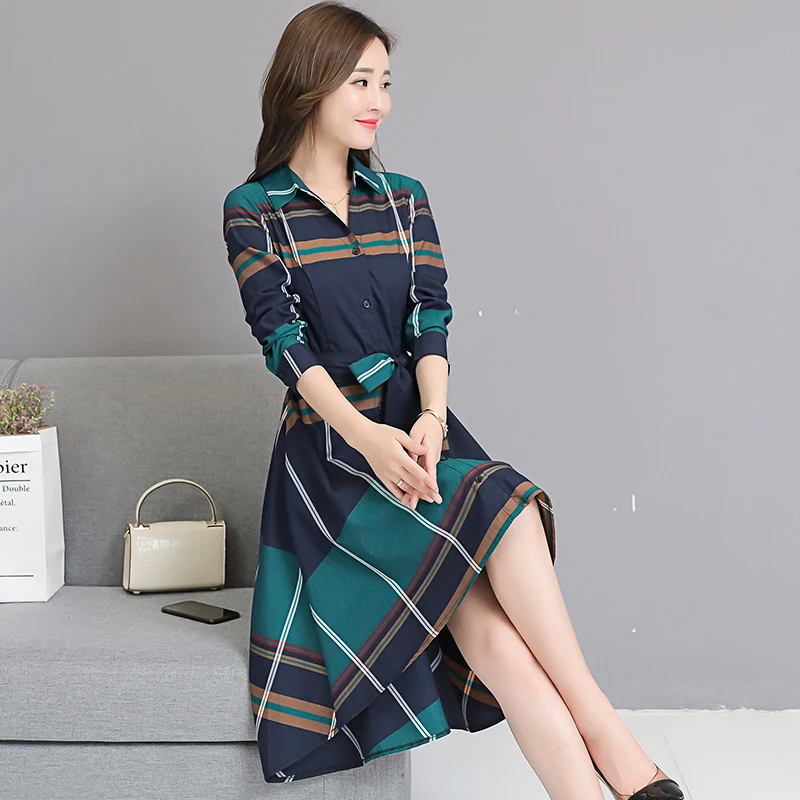 Special Offer 2020 Otoño Invierno Vintage Plaid Vestido de talla grande Vestido Mujer elegante Irregular mujer señora Oficina fiesta Vestido de manga larga Vestido Discount 35% Today!