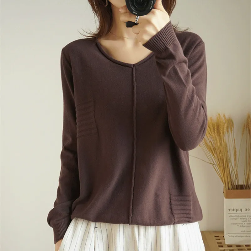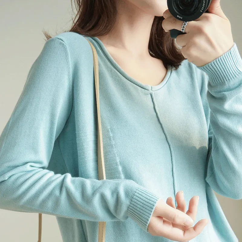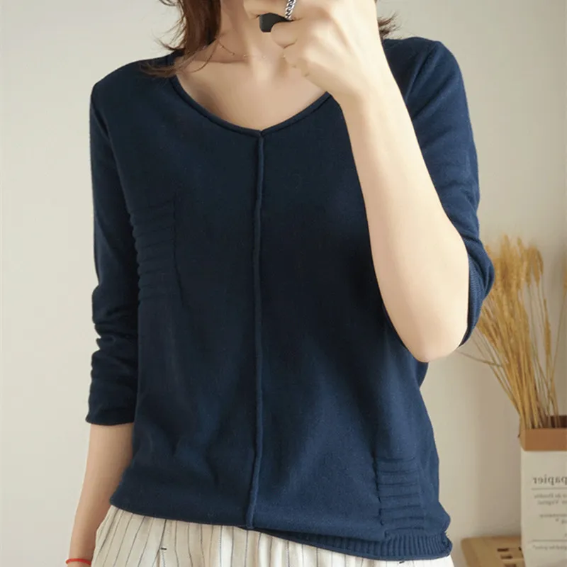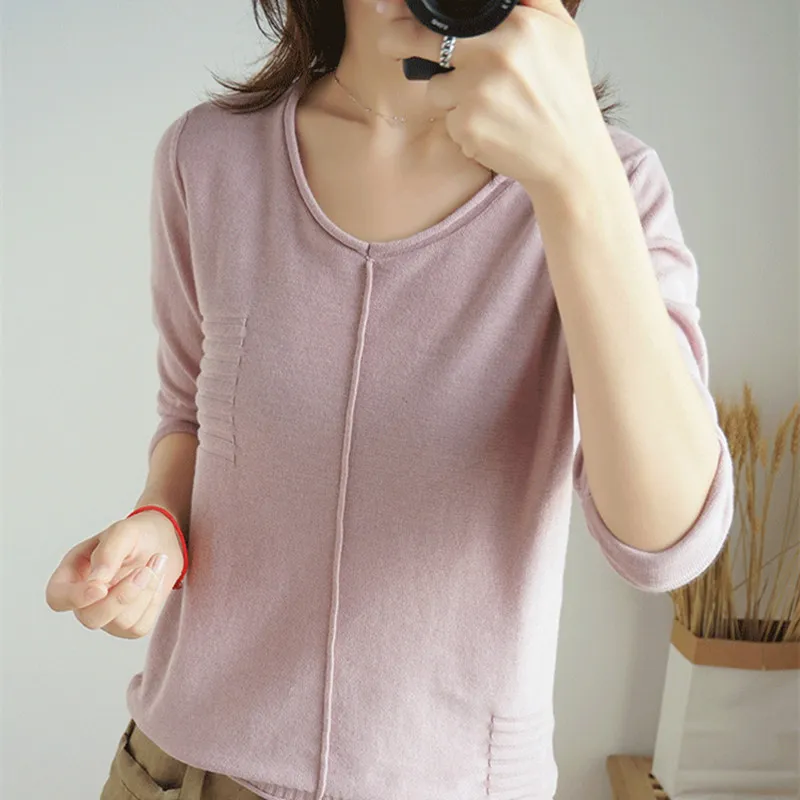 Special Offer SmpevrV Cuello 100% de algodón de punto de color sólido de manga larga femenina 2019 nuevo otoño suelta cabeza delgada camisa casual Camisa de fondo Discount 35% Today!