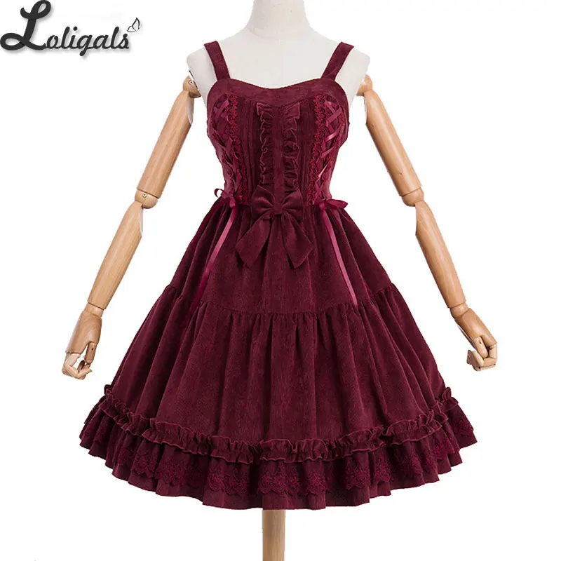 Special Offer 2019 dulce vestido de Lolita de pana vestido grueso alto vestido sin mangas a la cadera Discount 40% Today!