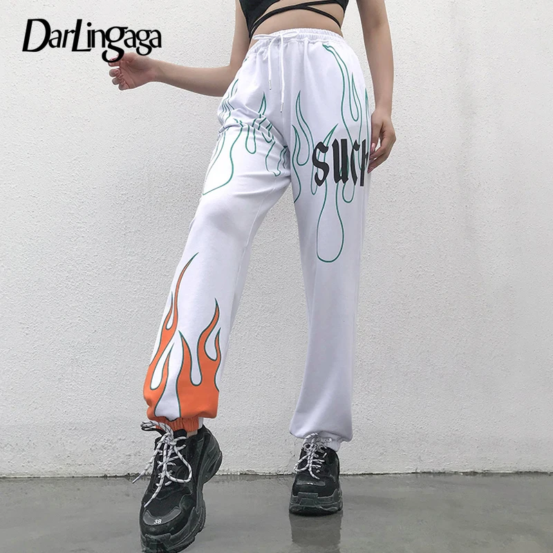 Special Offer Darlingaga moda suelta letra Flare estampado pantalones de verano Mujer Pantalones Streetwear alta cintura Harem pantalones parte inferior 2019 Discount 40% Today!