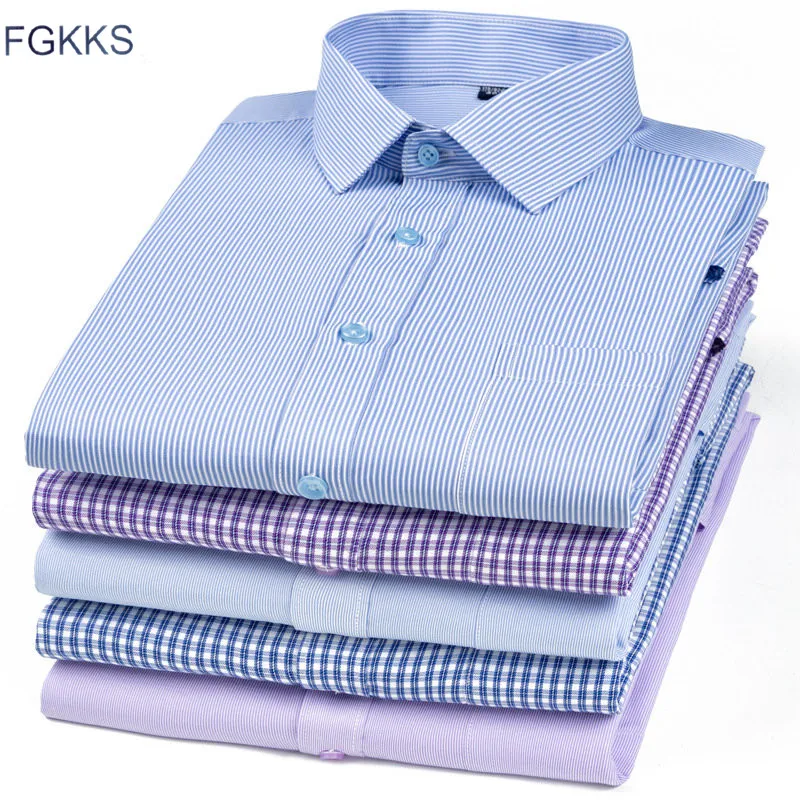 Special Offer FGKKS camisa de vestir para hombres camisa de manga larga Multi Color Original de los hombres camisas de fondo solapa Casual masculino superior Discount 40% Today!