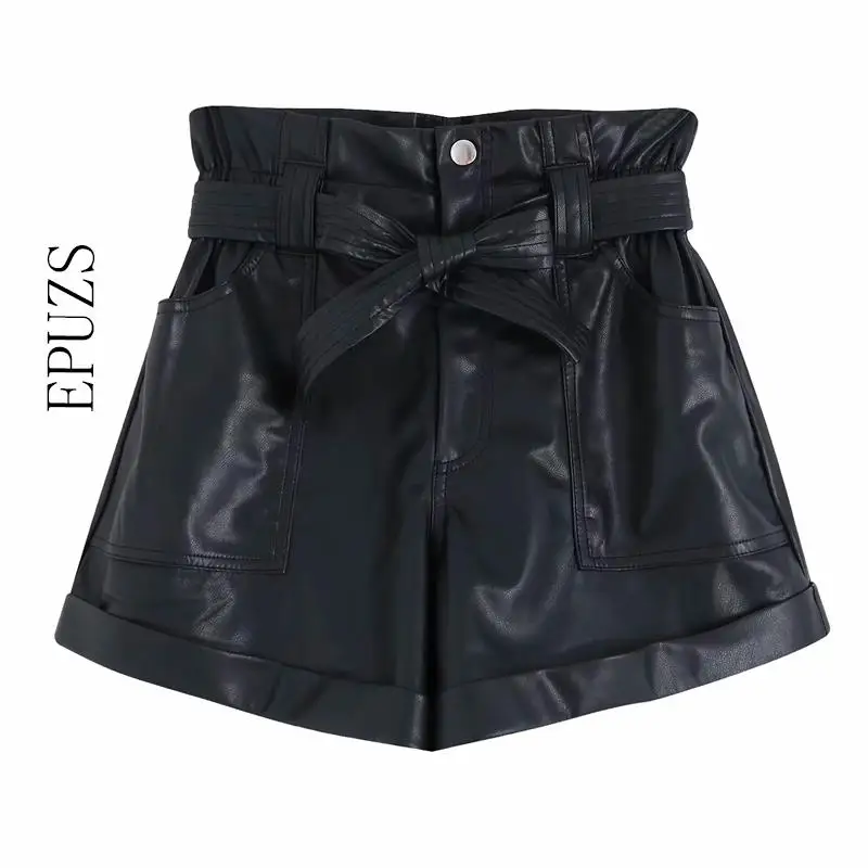 Special Offer Sexy cinturón PU cuero pantalones cortos mujeres negro mini biker shorts Streetwear señoras alta cintura casual pantalones cortos mujeres pantalones cortos Discount 44% Today!