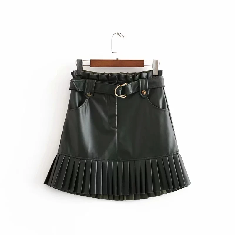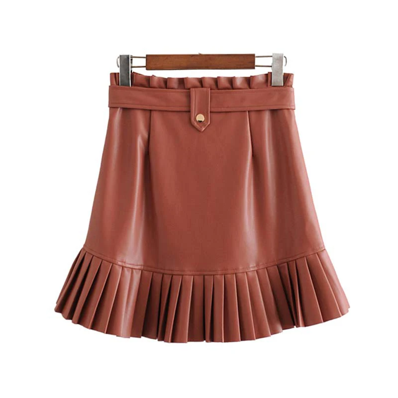 Special Offer Verano elegante chic PU falda de cuero sexy volantes mini falda lazo bolsillos sashes cremallera Falda plisada 2020 Discount 44% Today!