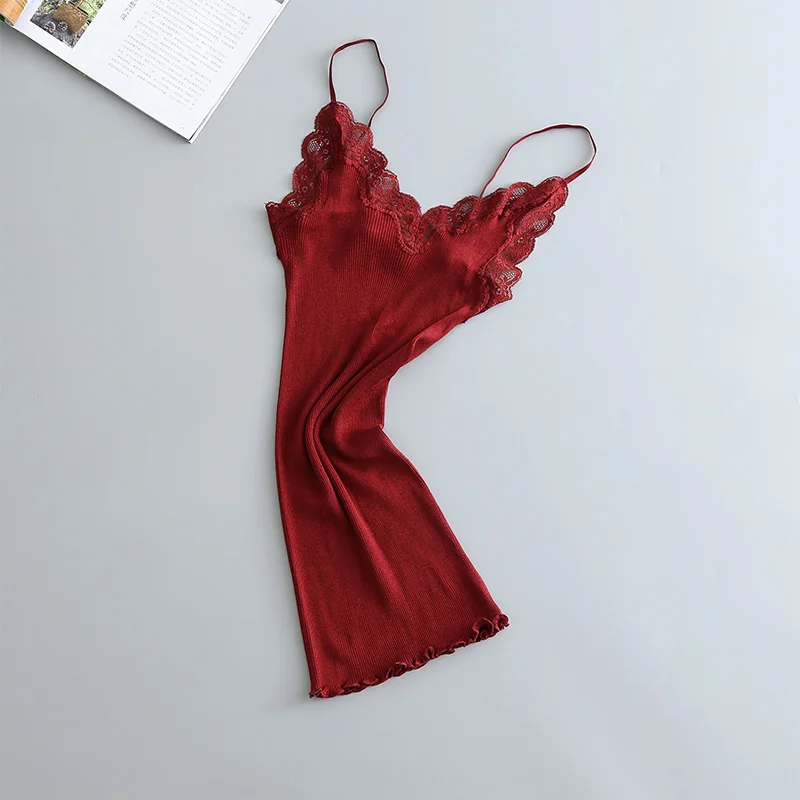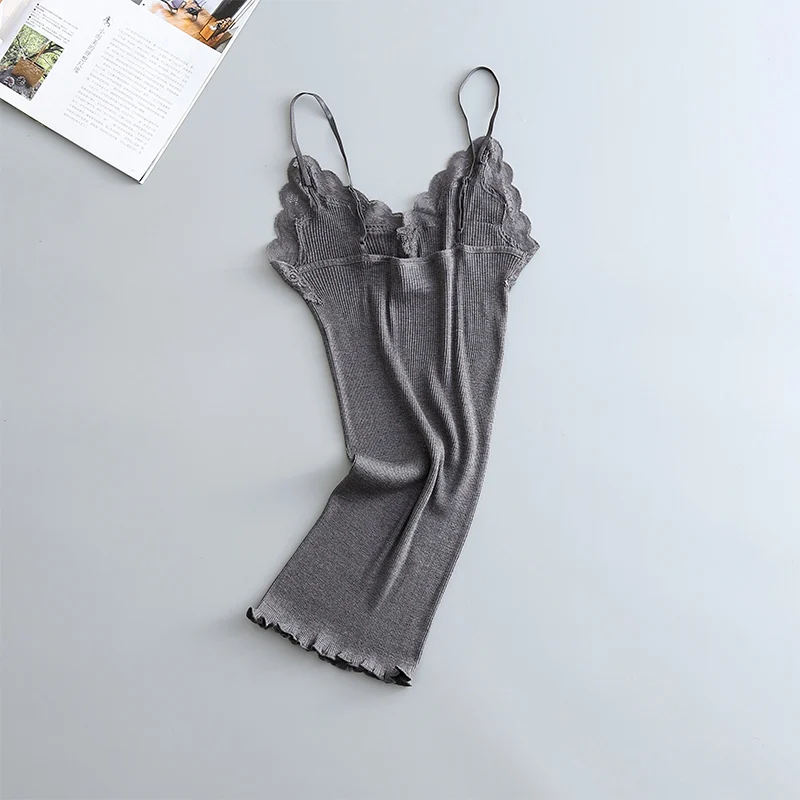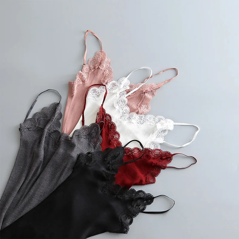 Special Offer Blusa de encaje de seda tejida al ganchillo acanalada para mujer sin mangas sin espalda de retazos camisetas para mujer 2020 verano primavera Bottoming tanque Discount 45% Today!