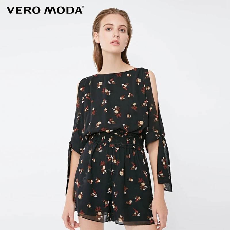 Special Offer Mono con escote redondo sin hombros con cordones y puños estampados para Mujer | 318378506 Discount 49% Today!