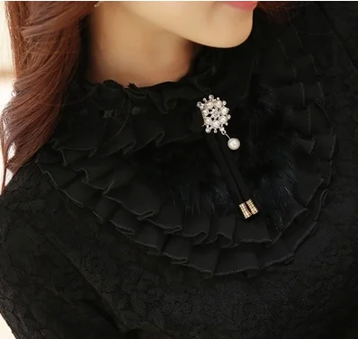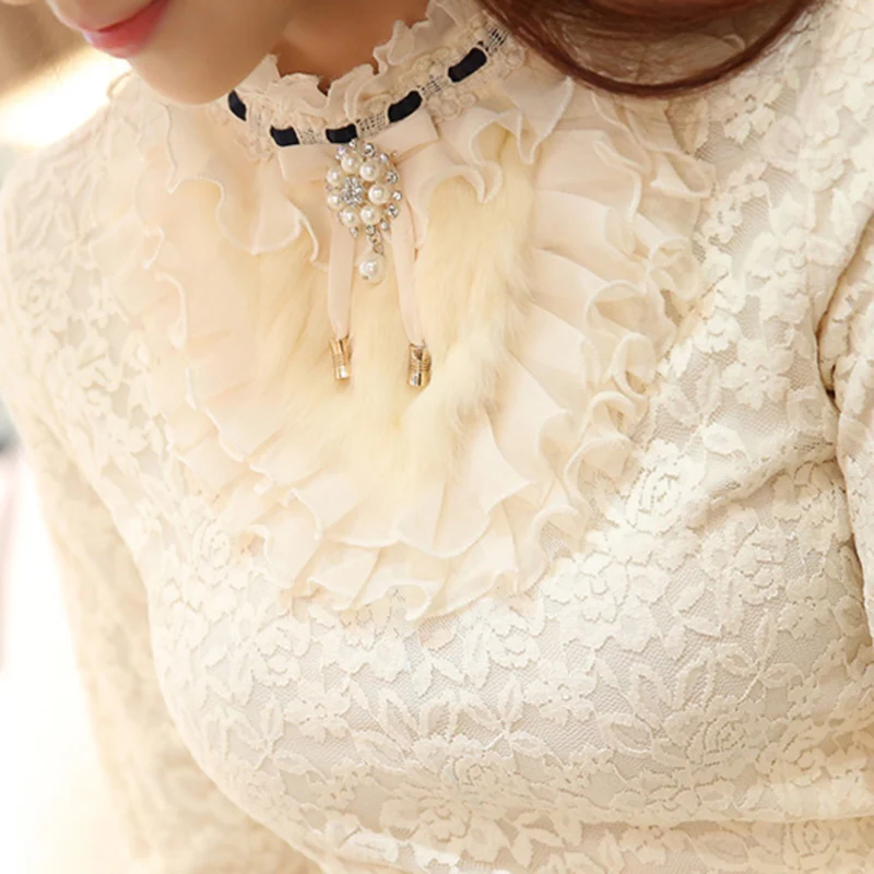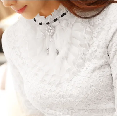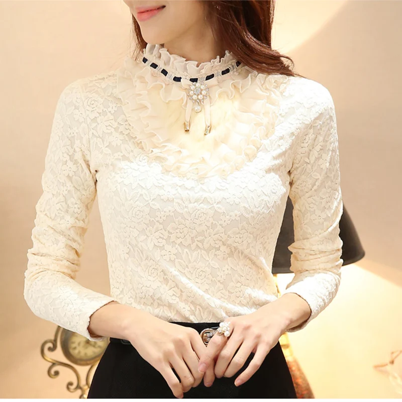 Special Offer 2019 nueva blusa de mujer con volantes de perlas de encaje blanco de oficina camisas de señora de manga larga elegante sólido Delgado sexy camisetas de fondo Discount 50% Today!