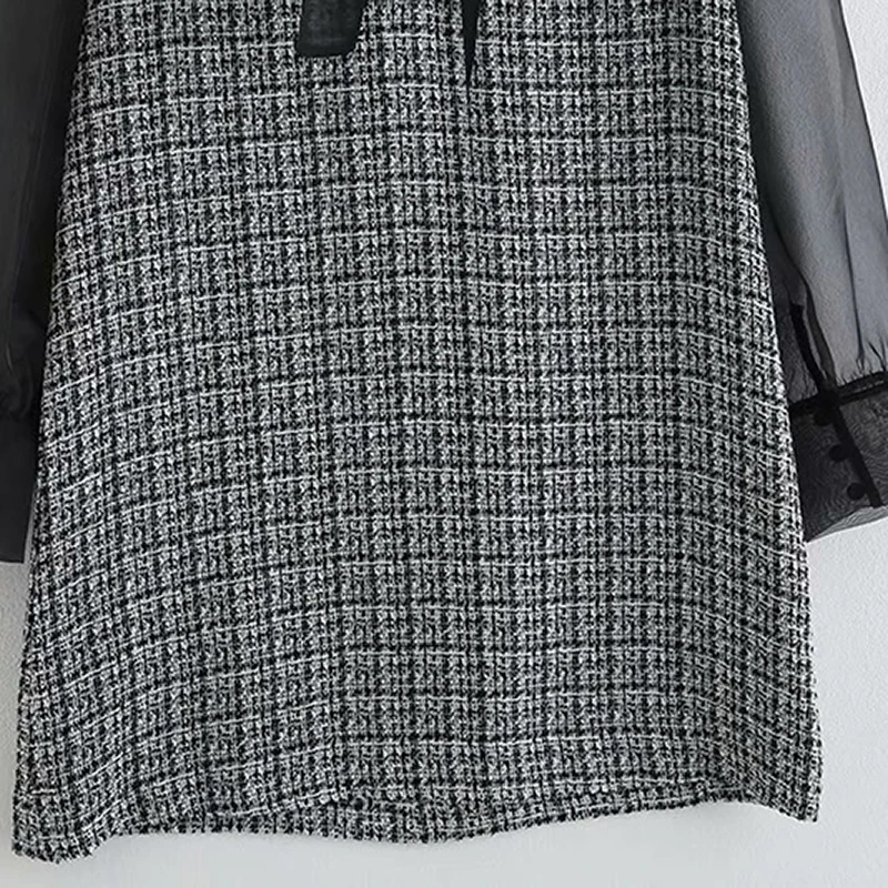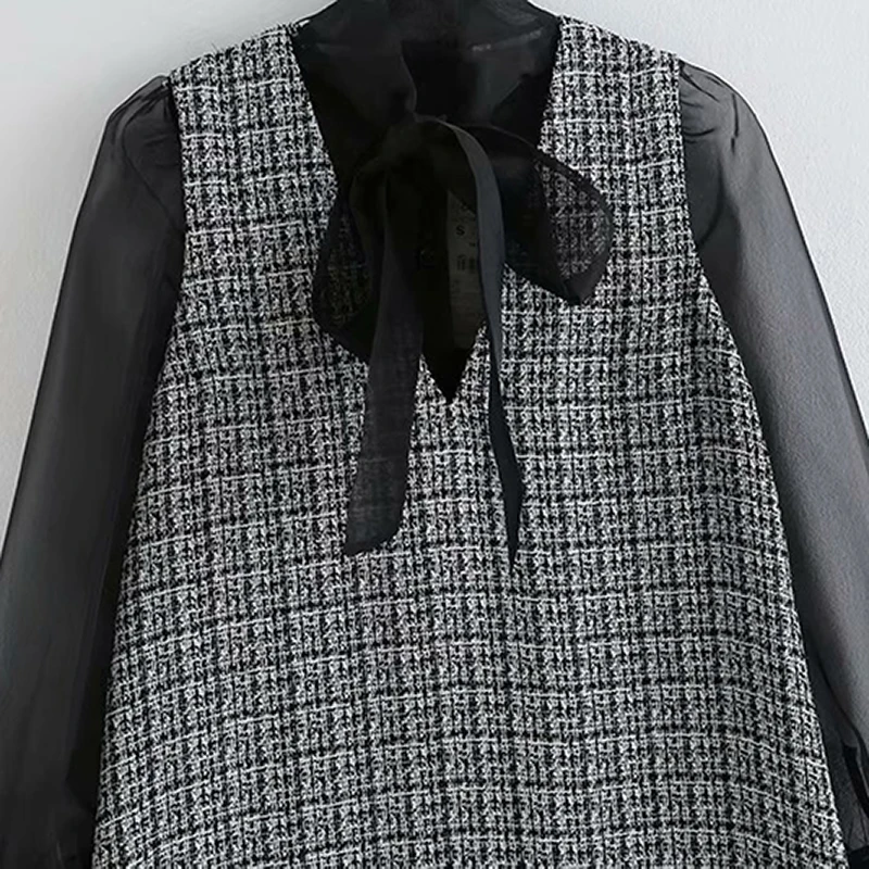 Special Offer Mini vestido elegante de retazos con cuello de moño para mujer Vintage para mujer ropa de manga larga suelta para mujer Discount 50% Today!