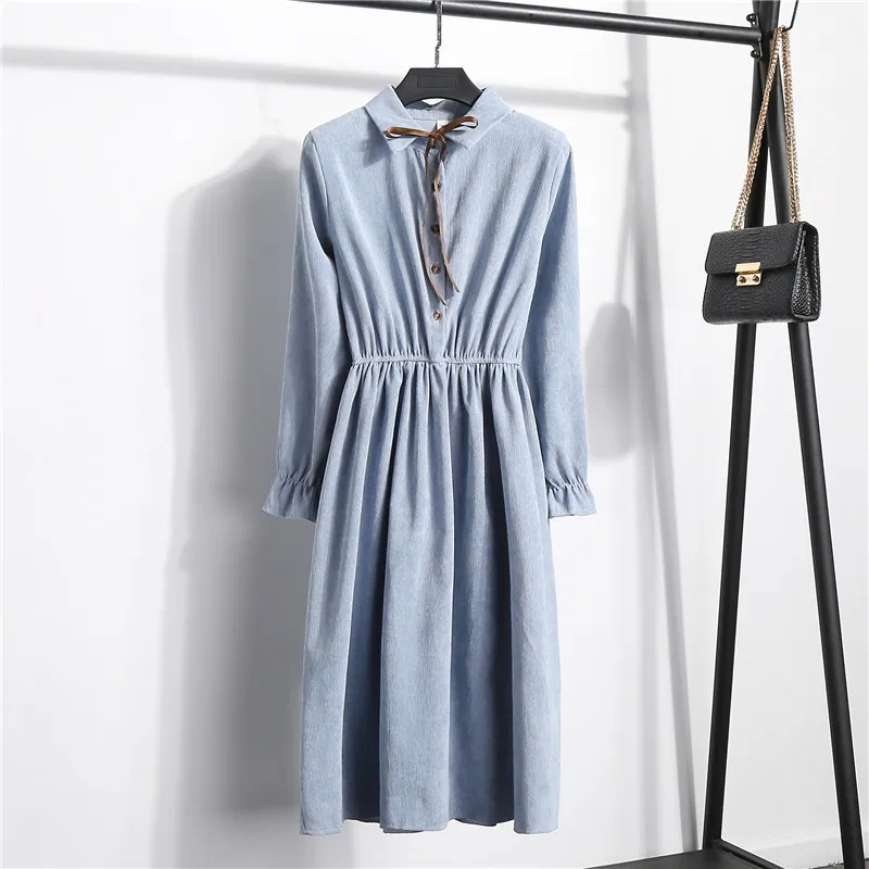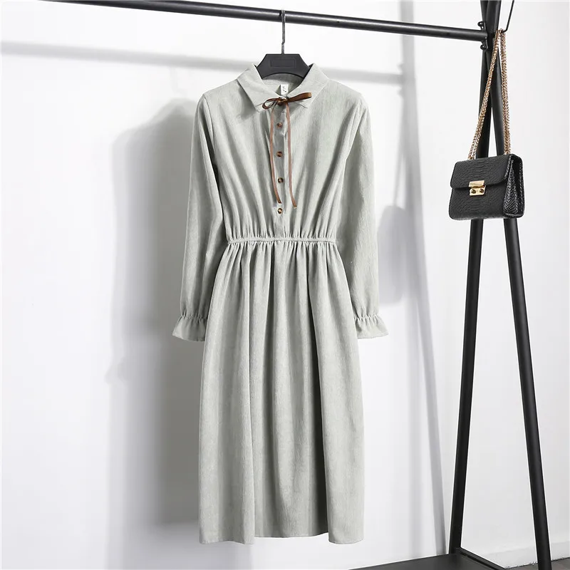 Special Offer Primavera vestido de cuello hacia abajo moda mujer vestido elegante lazo sólido otoño suelto Midi vestidos vestido de fiesta Discount 50% Today!