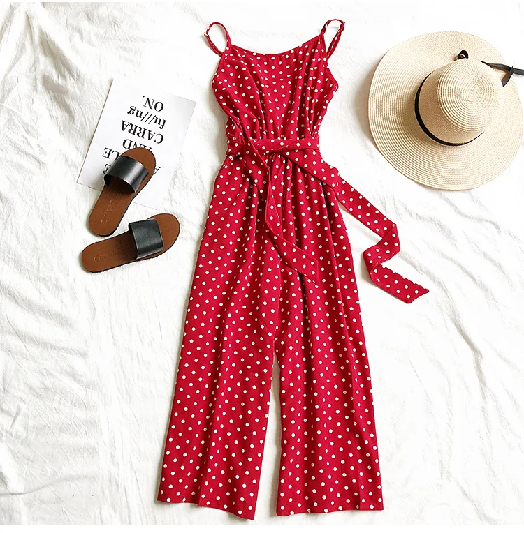 Special Offer Verano Mujer Vintage Dot Bow cintura espalda descubierta Sexy camisola monos mujer monos suelta pierna corto monos Discount 53% Today!