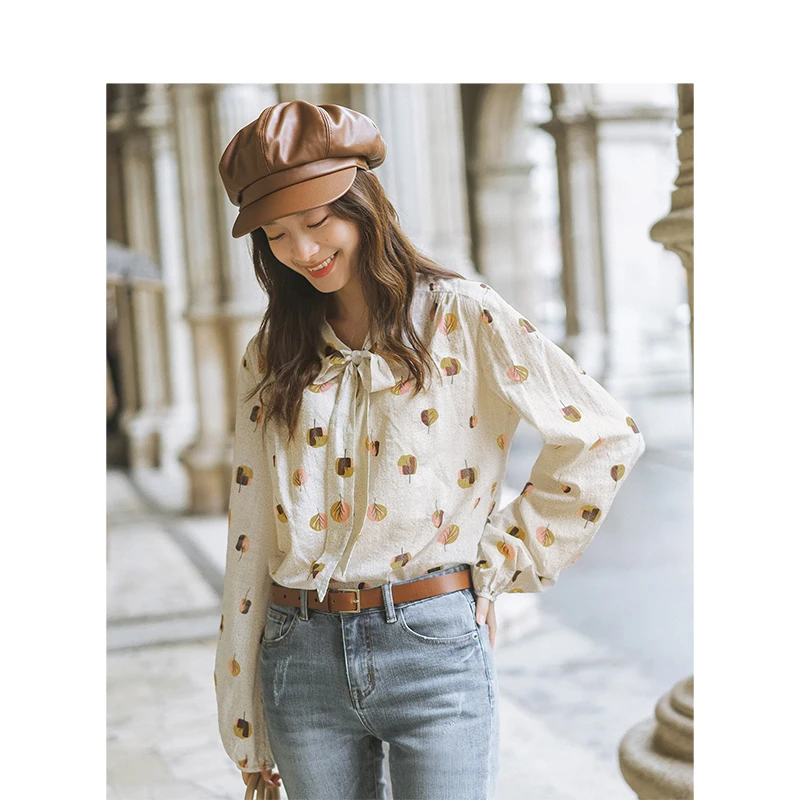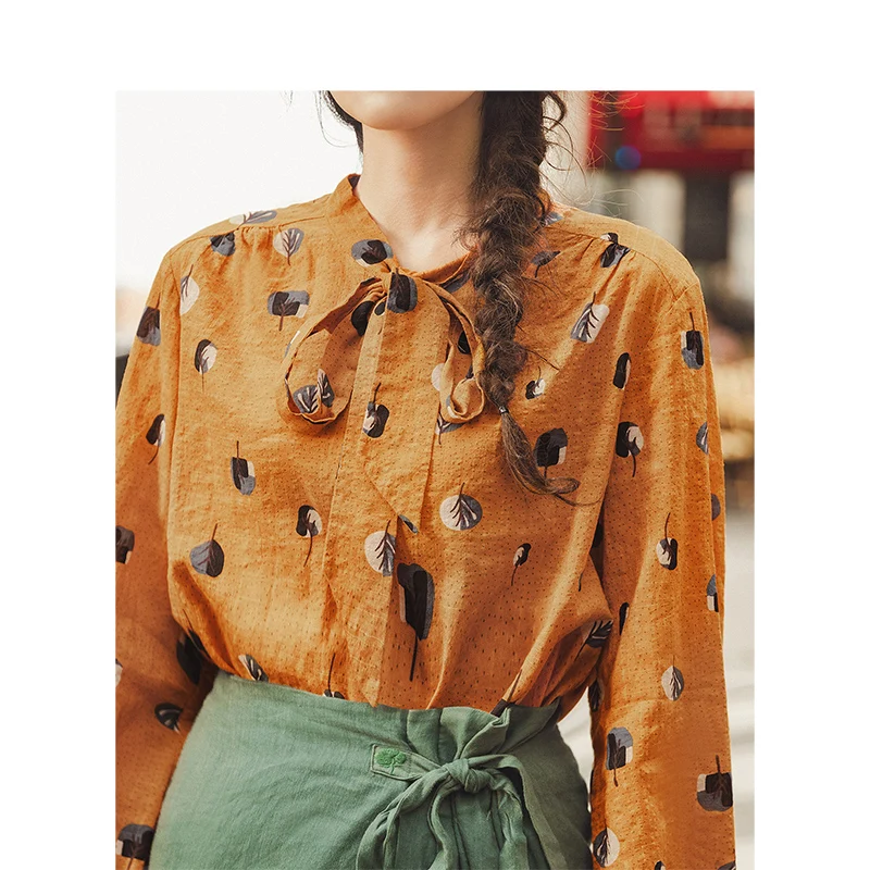 Special Offer INMAN primavera otoño viscosa algodón suave estampado bonito lazo literario elegante Verstand mujer blusa Discount 62% Today!