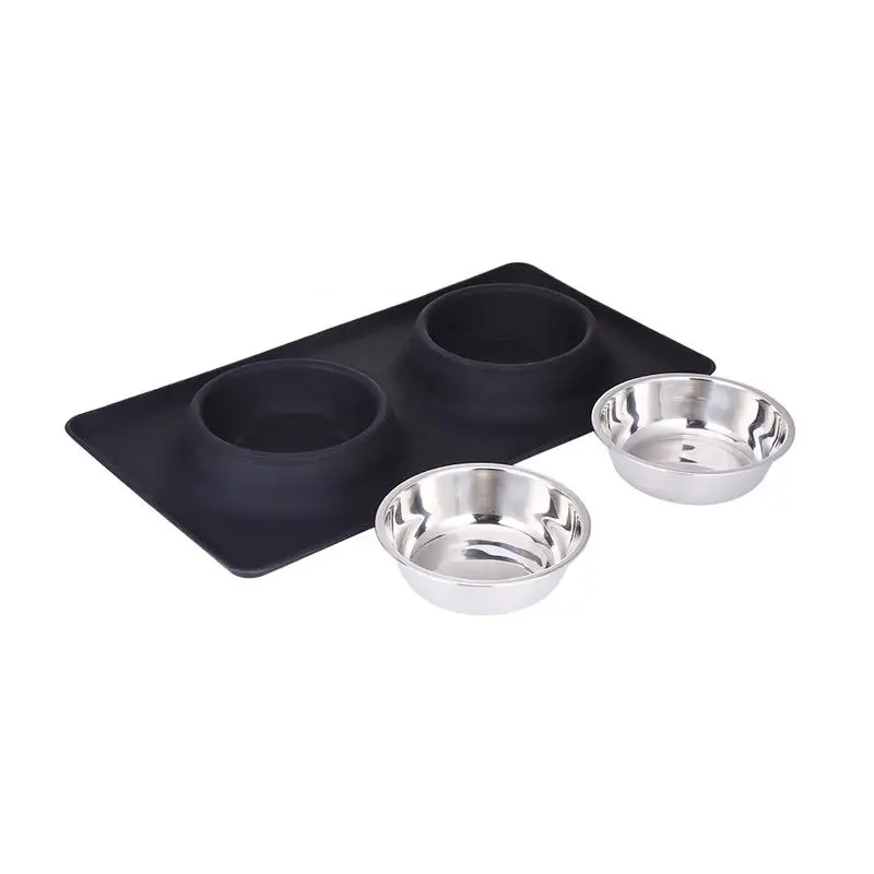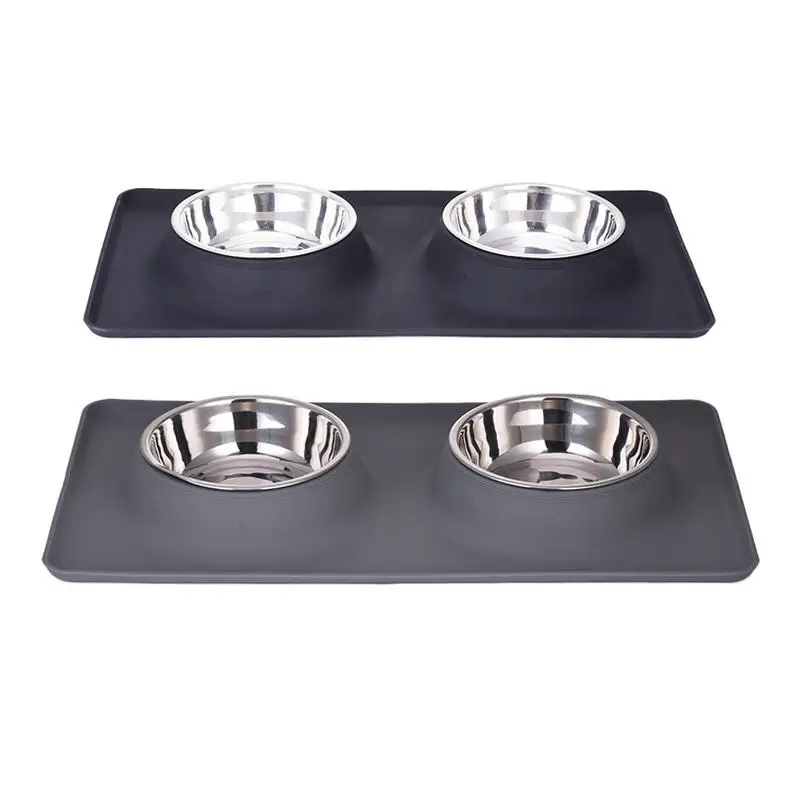 Special Offer Cuenco doble de acero inoxidable Comedero tazón de agua de alimentación de viaje alfombrilla de silicona antideslizante para perro mascota gato plato de agua de comida Discount 1% Today!