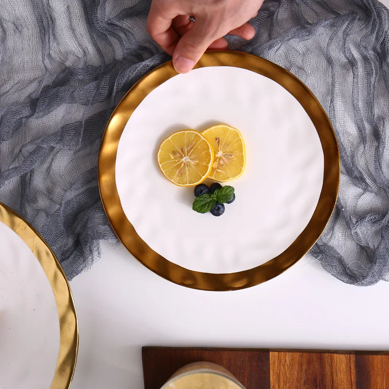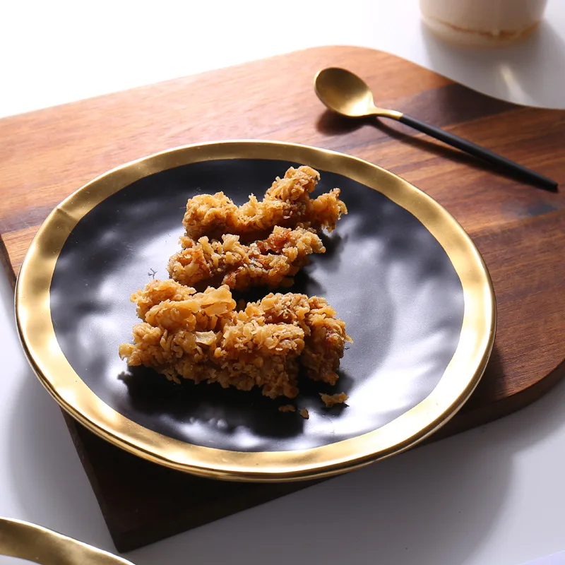 Special Offer Juego de vajilla con incrustaciones de oro, plato y cuenco de cerámica con borde dorado, vajilla blanca y negra Discount 15% Today!