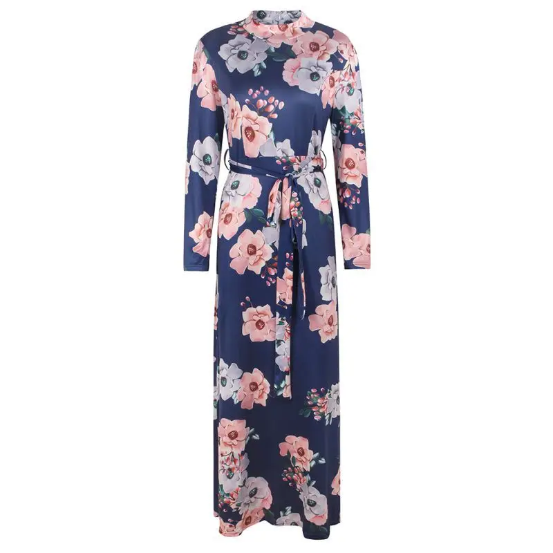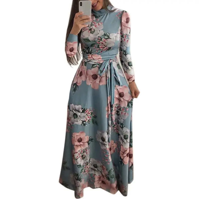 Special Offer 2020 otoño Vestido Mujer Casual cuello redondo Vestido de manga larga Vintage elegante estampado lazo Correa Delgado vestido largo vestidos A Discount 26% Today!