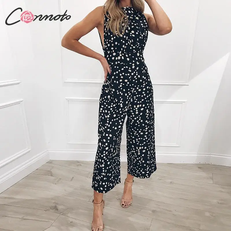 Special Offer Conmoto Casual playa vacaciones Sexy monos Romper mujer alta moda sin mangas pierna ancha lazo Mujer talla grande mono Discount 40% Today!