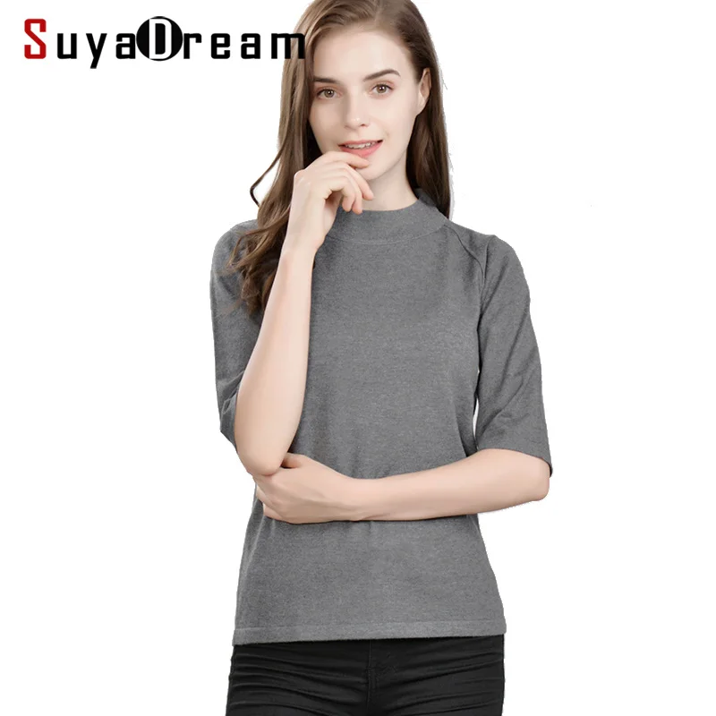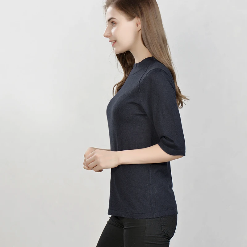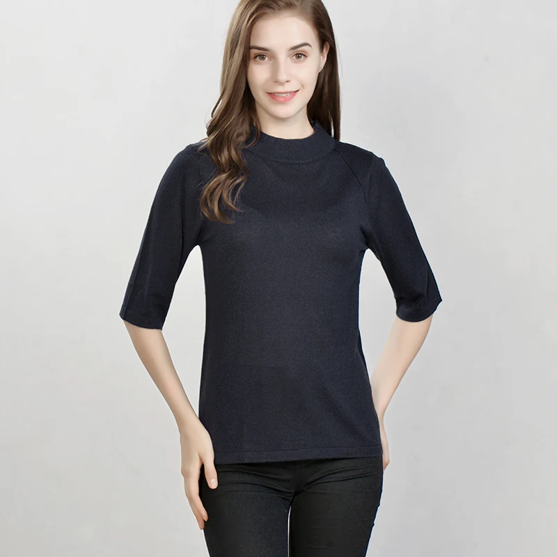 Special Offer Jerseys para mujer 85% seda Real 15% Cachemira media manga suéteres para mujer 2018 Otoño Invierno ropa de punto de fondo negro marino Discount 40% Today!