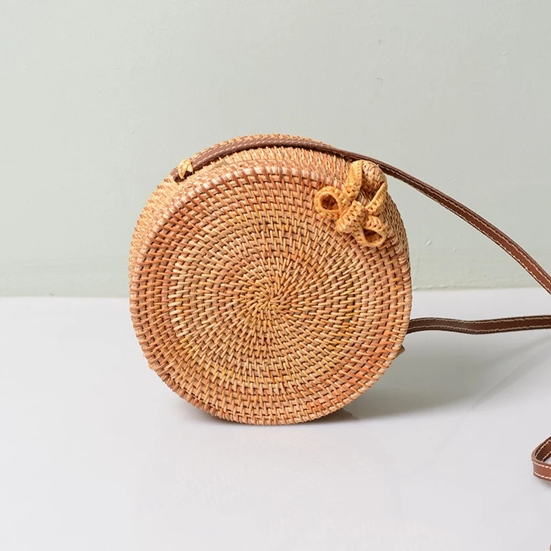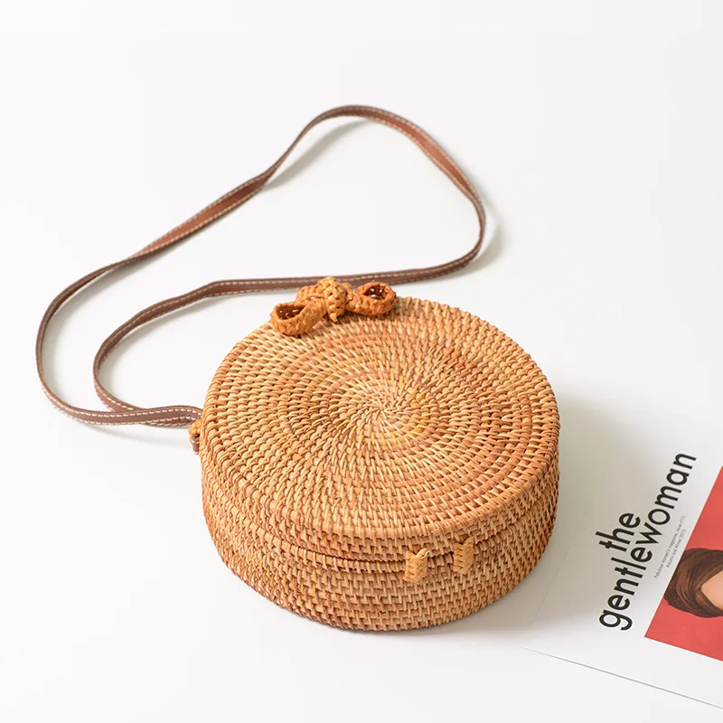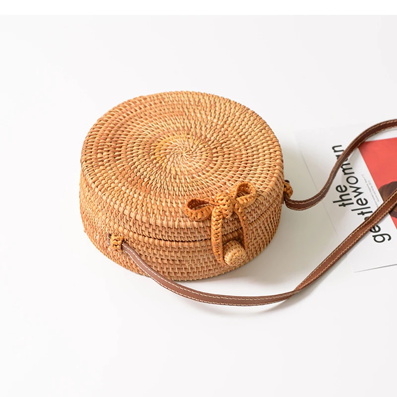 Special Offer Bolso de paja redondo bolsos de lujo bolsos de playa de verano de diseñador tejido hecho a mano Bowknot cuero mujeres hombro bandolera Boho Discount 42% Today!