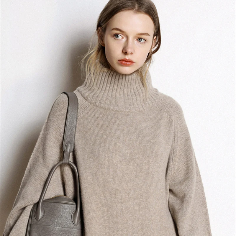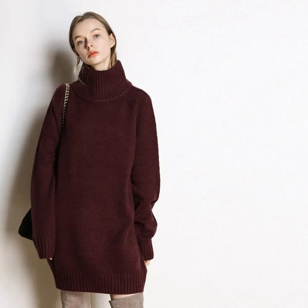 Special Offer Suéter de cachemira de las mujeres de alta Cuello suéter de cachemira de las mujeres de color sólido suelto suéter de gran tamaño de punto que basa la camisa Discount 42% Today!
