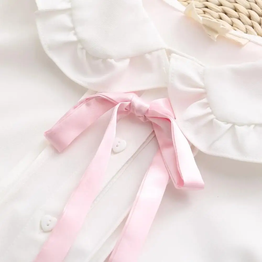 Special Offer 2019 blusas Lolita para mujer blusas de Otoño de manga larga cuello peter pan Rosa bowknot blusa blanca camisa de la escuela japonesa Discount 50% Today!