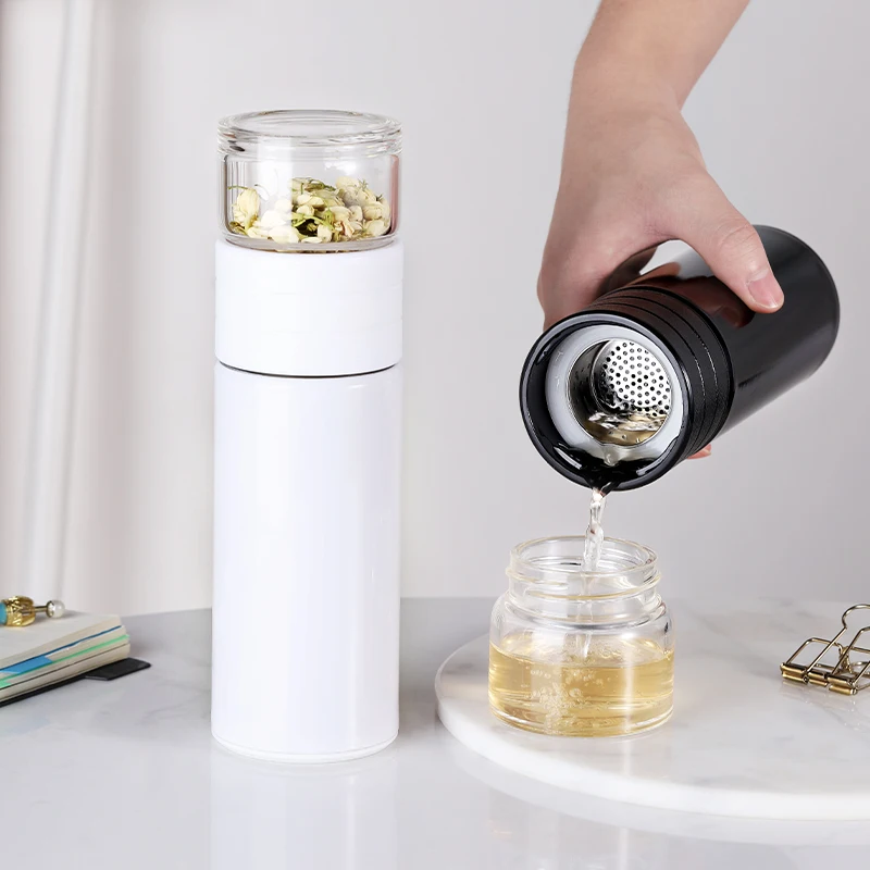 Special Offer Termos con tapas dobles más nuevos, frascos de vacío de acero inoxidable 304 + separador de té de borosilicato alto para hombres y mujeres Discount 50% Today!