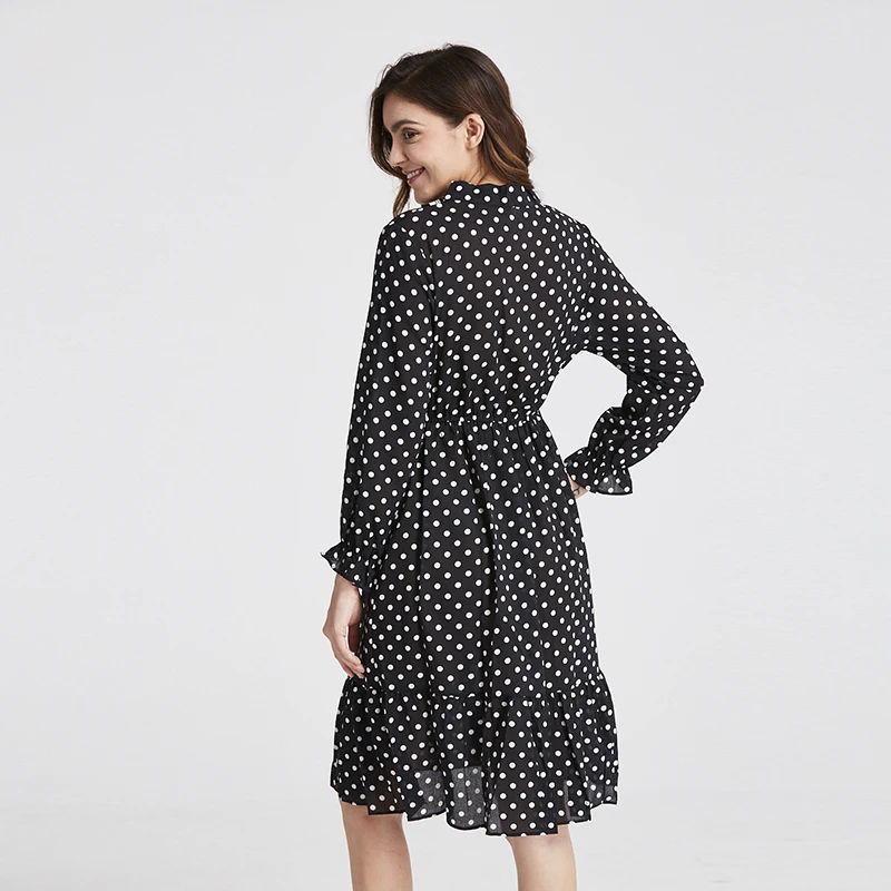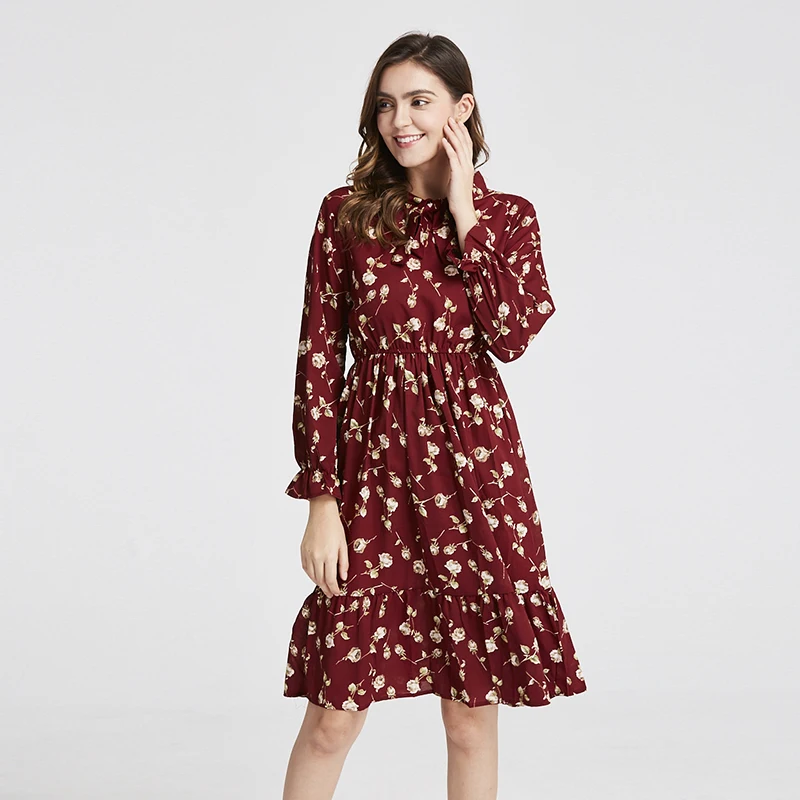 Special Offer Primavera otoño 2019 vestidos de gasa para mujer cuello alto con lazo estampado Floral volantes Vestido de manga larga elegante lindo Vestido S XL Discount 52% Today!