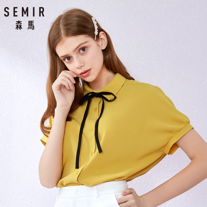 Special Offer SEMIR 2019 verano nueva camisa de manga corta para mujer solapa Universidad viento chica dulce Universidad viento chifón camisa marea Discount 63% Today!