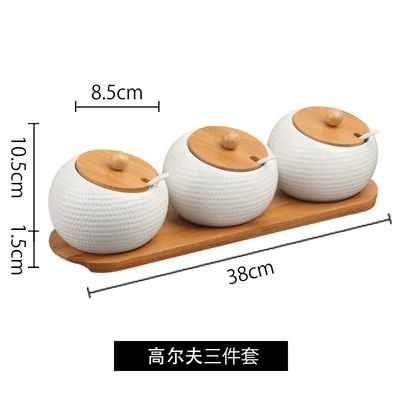 Special Offer Tarro de condimento de cruet de cerámica cuenco de sal cuenco de azúcar cocina hogar de cerámica condimento tapa de frasco de vidrio tanque de almacenamiento bandeja de madera Discount 20% Today!