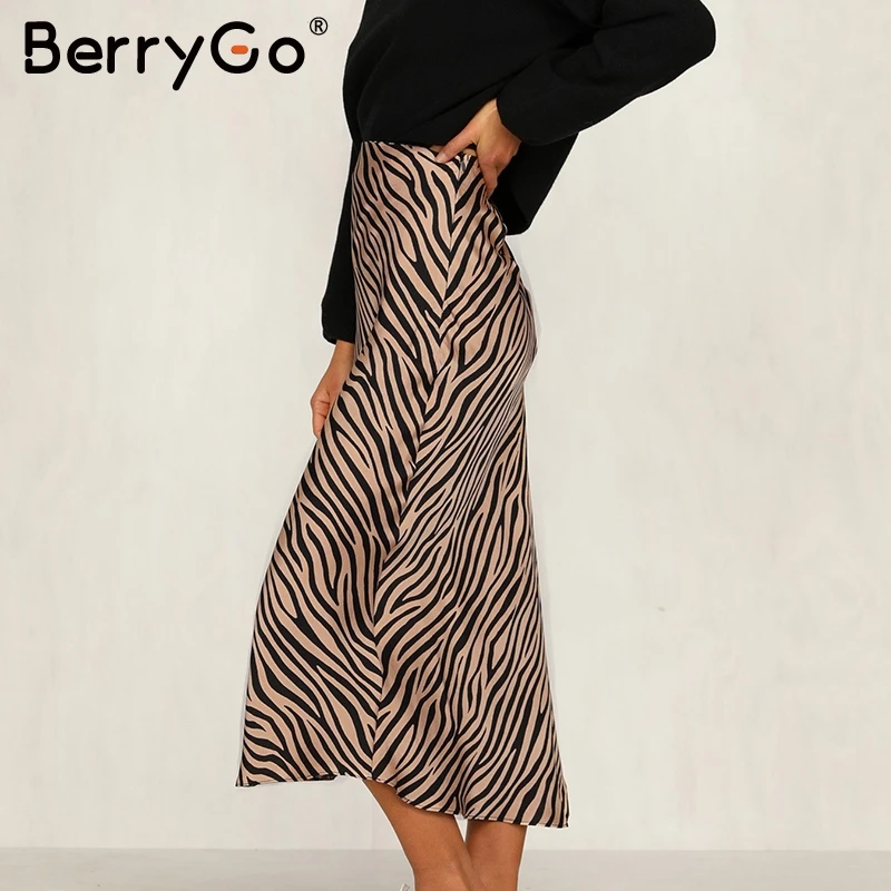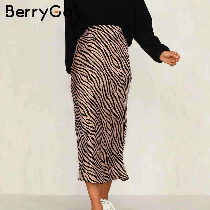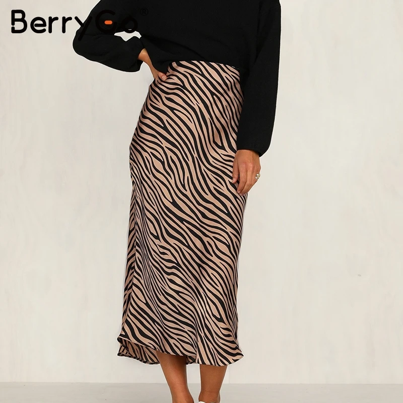 Special Offer BerryGo Zebra stripe mujeres midi falda de alta cintura recta animal estampado femenino inferior falda ocio night club party ladies falda Discount 45% Today!