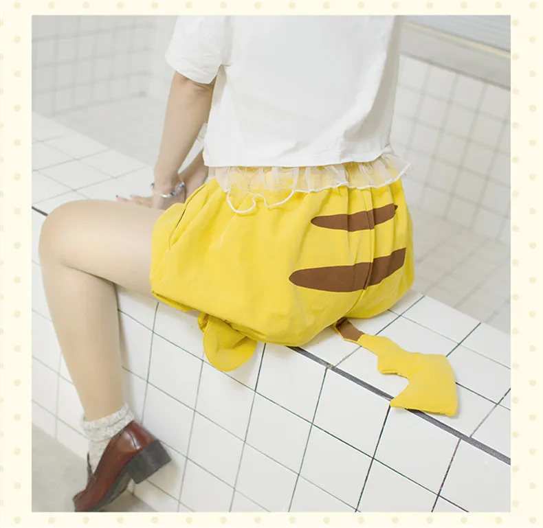 Special Offer Lindo dormir Pantalones cortos, short Mujer Lolita Kawaii trasero de perro galés Pokemon Pikachu Harajuku calabaza Bloomers de cintura elástica B81801 Discount 6% Today!