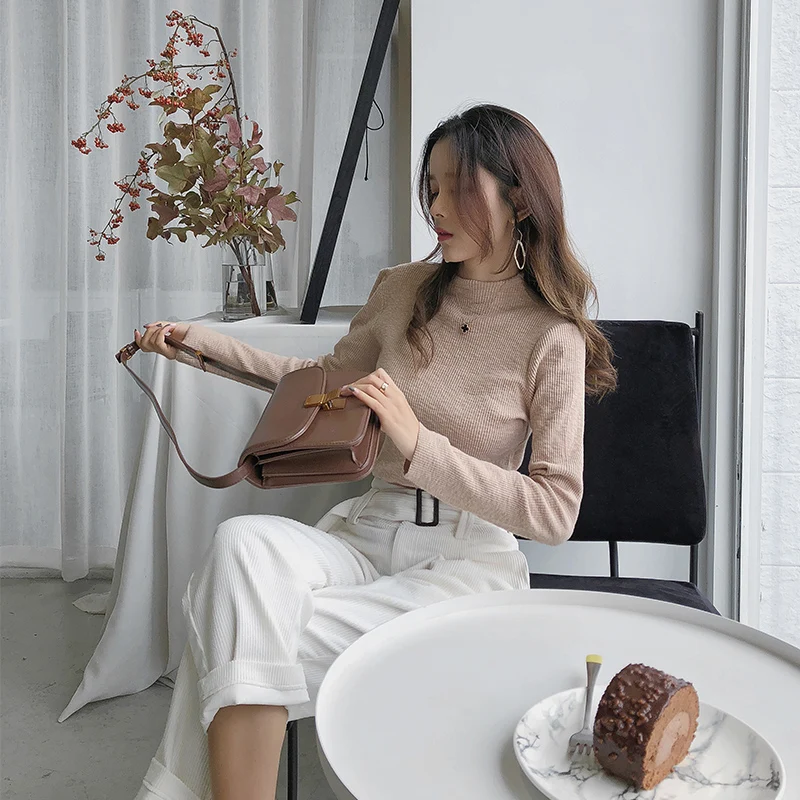 Special Offer 2019 MISHOW Otoño Invierno pequeño de cuello alto de punto de fondo camisa mujeres Delgado Ajuste de manga larga suéter camisetas MX18D3417 Discount 70% Today!