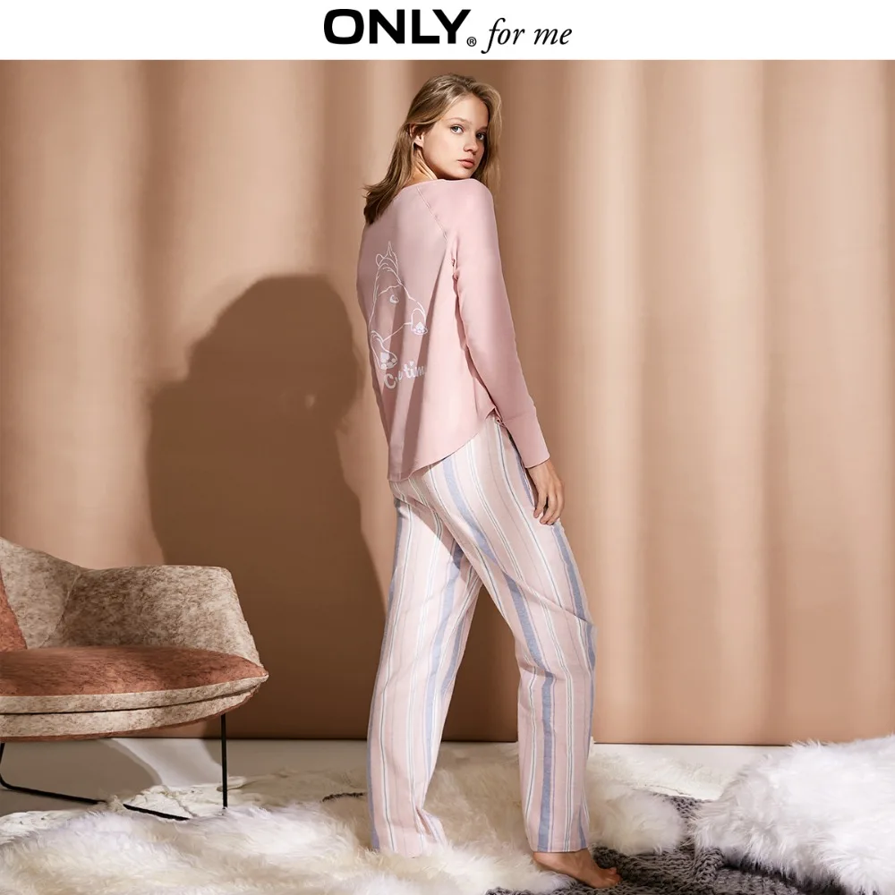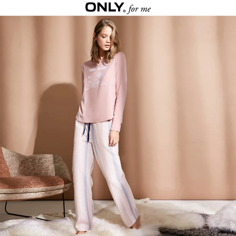 Special Offer Pantalones de pijama holgados con cordones a rayas de algodón 100% ONLY para Mujer | 118414504 Discount 71% Today!